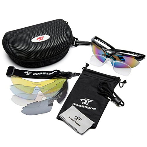 -. Title : ROBESBON 0089 Riding Cycling Glasses Shortsightedness Sport Glasses 5 Pairs of Lenses Black