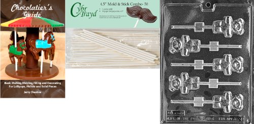 Cybrtrayd 45St50Bk-A031 'Teddy Bear Lolly' Animal Chocolate Candy Mold with 50 4.5-Inch Lollipop Sticks and Chocolatier's Guide