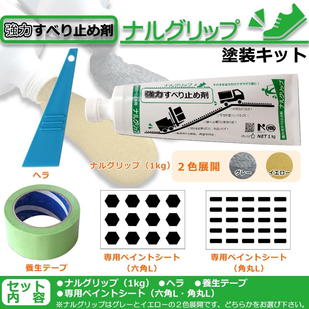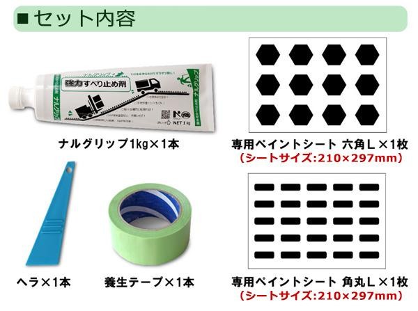 | セット内容 | ナルグリップ(1kg) 専用ペイントシート×2枚(六角L・角丸L) ヘラ 養生テープ |