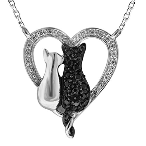 Pet lovers are a special breed of humans. From the ASPCA Tender Voices Jewelry Collection, this sterling silver cat heart pendant features combination of 18 white and 24 black diamonds with round black treated diamonds. A complimentary 18 inch cable chain with spring lock and also includes a small 'ASPCA' tag dangling at the clasp to ensure its authenticity. Every purchase of our ASPCA collection we also give a free Tender Voices® medallion that can be clipped on to any collar of your pet. Your purchase of ASPCA products helps ensure dogs and cats across the country find compassion, comfort and love. Our sense of responsibility to the larger community has inspired us to become active members of the Kimberley Process Certification. We are also an active member of RJC (Responsible Jewellery Council).Feature