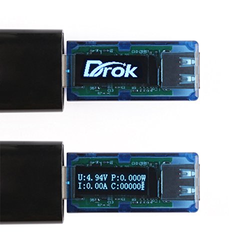 MULTIFUNCTION - This ideal multiple USB Detector can be used for capacitance checking, capacitance clear, over voltage and under voltage alarm, over-current, and short circuit alarm. Using DROK alignment tool, you can monitor output voltage and current of mobile charger cables, power use of raspberry pi or Arduino board, compare the performance of solar charger in different conditions. You can easily test the power/quality of the chargers and USB cables.