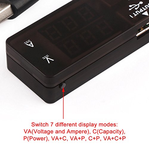 7 MODE USB MONITOR - DROK USB Pocket Digital Multimeter is a very useful tool that can be used to measure voltage, current, capacity, and power going to your phone/battery pack. Use the button to choose between 7 different modes. It is a very handy device to evaluate whether or not the computer, USB wall charger, USB car charger are outputting acceptable voltage and current range for the device you are connecting.