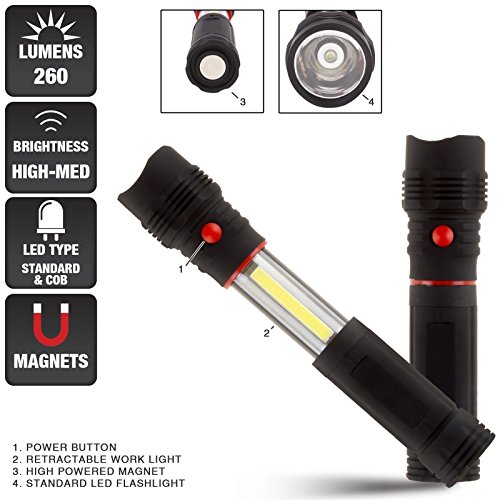 Studio : LEDJUMP Publisher : LEDJUMP Binding : Sports Product Description LEDJump? Ultra-Slide Super Bright Magnetic LED Flashlight Bar, Area Lighting Flash Bar Lights, CREE SMD COB 2500Lumen, Hiking, Camping, Traveling and Home Using, Light Lamp for Outdoor, Powered By 4pcs AAA Battery (Not Included), LJFLASH-080 Features: Magnetic LED Flashlight Bar CREE SMD Flashlight, Reliable Brightness Guarantee High Quality Aluminum Material, Not Easy Damage Switch Slide Function, Either Use Head Light for Spotlighting or Side Lighting For Area Illumination Skid-Proof Design Water Resistant Design 180 Degree Side Lighting, Reflector Shell, Length: 6.5" Inches, Pull-Out Extension Length: 9" Inches Package Included: 1 PCS Flash Light Bar . 0