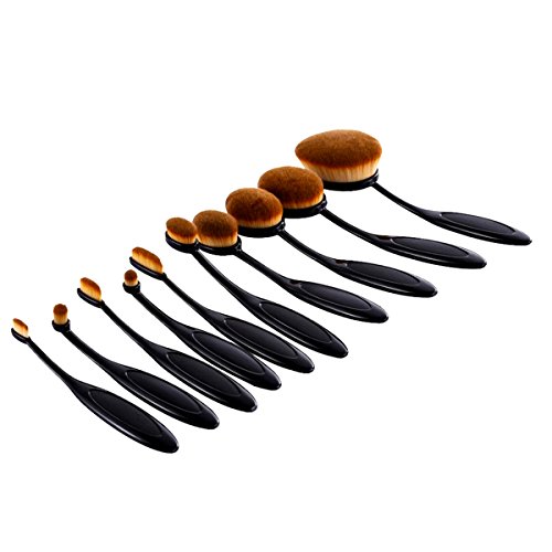 Material:Synthetic hair and Plastic handle.Pack of 10 makeup brushes.