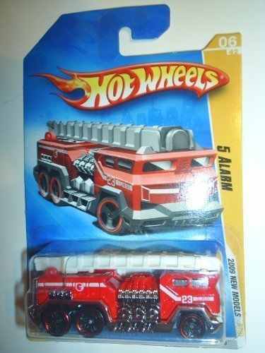 -. Binding : Toy -. Brand : Hot Wheels -. Color : red -. Department : boys -. EAN : 0027084725285 -. Feature : Red body / White stripe and '23' tampo on sides / Treasure Hunt symbol on sides / Grey Malaysia base / Black Phil Riehlman wheels -. IsAdultProduct : 0 -. Label : Mattel -. Manufacturer : Mattel -. MPN : N4009 -. PackageQuantity : 1 -. PartNumber : N4009 -. ProductGroup : Toy -. ProductTypeName : TOYS_AND_GAMES -. Publisher : Mattel -. Studio : Mattel -. Title : Hot Wheels 2009 New Models 5 Alarm Red Fire Truck Engine with Ladder -. UPC : 027084725285