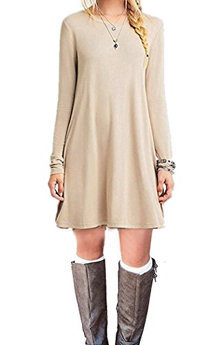 Features: casual T-shirt style,stretch,comfy loose fit ,flowy dress, can wear with leggings and boots.