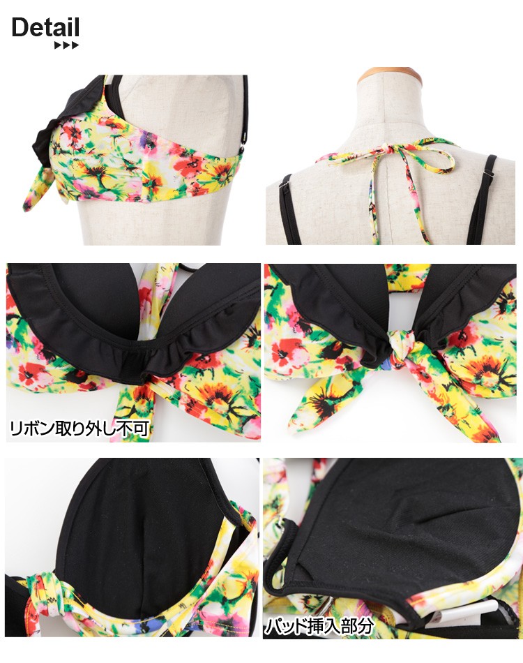 | 商品説明 | 幅広い年代にお使いいただける人気の 花柄ビキニ♪しっかりワイヤー入りなので、 バストアップ効果も◎フリルがついた レイヤードデザインはさらに胸元を ボリューミィに演出してくれます♪ カラフルで華やかな花柄に、 ブラックが引き締めてくれる バランスが取れたビキニです★ ※輸送上の都合により、多少の汚れ・シミなどが見られる場合がございます。 また、発送上の状態によって商品がシワになる場合がございます。予めご了承くださいませ。 |
