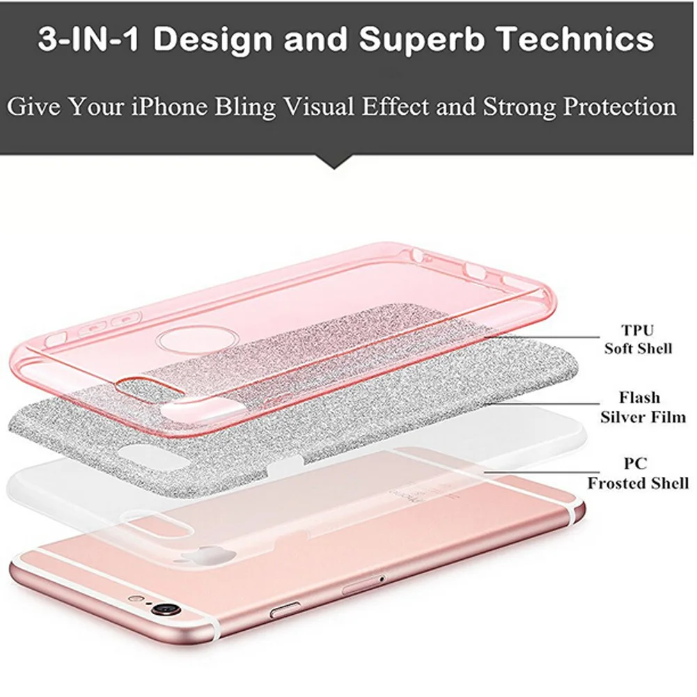 Features:Glitter 3 Layer Shockproof Phone Cases Covers