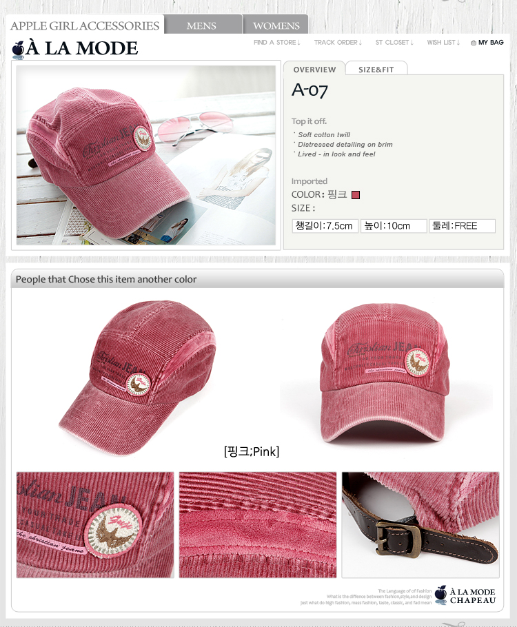 - 종류크리스챤 다니엘 남녀공용 빈티지 캡 모자 A-07(핑크)