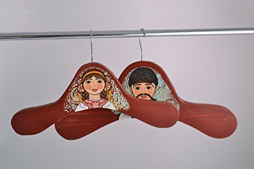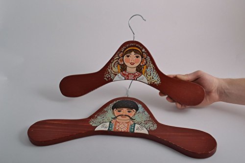 -. Feature : DETAILS - These hangers for clothes are cut out of wood and painted with acrylics. One of them represents an image of a boy, and another one - of a girl. They are dressed in ethnic costumes. These beautiful clothes hangers will be a magnificent present for a lover of unusual decorations for home. /