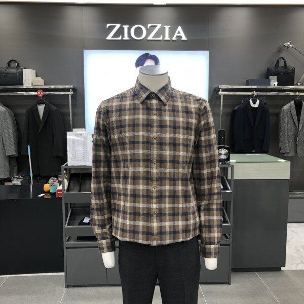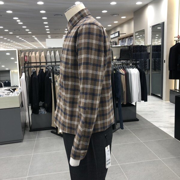 레귤러 카라.부드러운 브라운 컬러의 체크패턴 셔츠로 깔끔한 슬랙스 착장이나 캐쥬얼 착장 어디에나 용이한 아이템.
