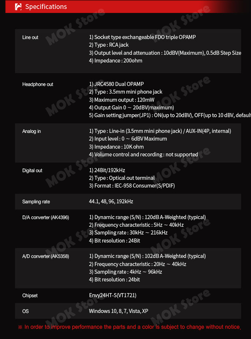 | Sampling Rate | 44.1, 48, 96, 192KHz | |