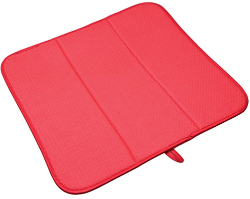-. Feature : Perfect solution to replace dish towels on the counter when handwashing pots, pans, dishes, glassware and cutlery / This unique design holds 4 times its weight in water by combining a thin layer of foam between two high quality, super absorbent, durable, / Folds and stores easily, wring out most of water after use and drying fast / Dish Drying Mat Cushions Your Delicate Dishes and Stemware.