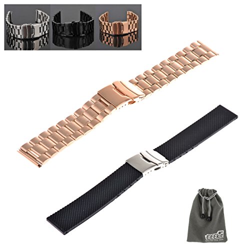 Kit Includes: 1 x Replacement Stainless Steel Metal Watch Band Strap, 1 x Replacement Soft Silicone Rubber Light Weight Watch Band Strap, 2 x Tools for Band, 1 x EEEKit Accessory Pouch.