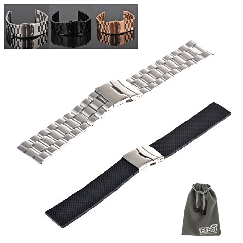 Stainless Steel Metal Watch Band Strap, Made of high quality stainless steel metal it feels great when wearing. Width Length: 0.86 inch (22mm), Full Length: 7.09 inch (180mm).Soft Silicone Rubber Band provides your another replacement with light weight and fashionable sport style. Width: 0.86 inch (22mm), Length:7.87 inch(200 mm).The Tool is provided to adjust your watch strap, convenient for you.