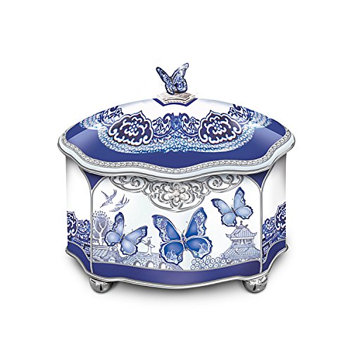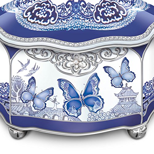 Title : Blue Willow-Inspired Flights Of Love Heirloom Porcelain Butterfly Music Box by The Bradford Exchange
