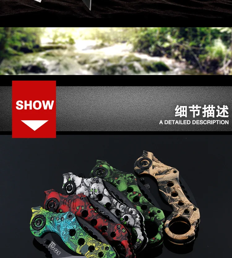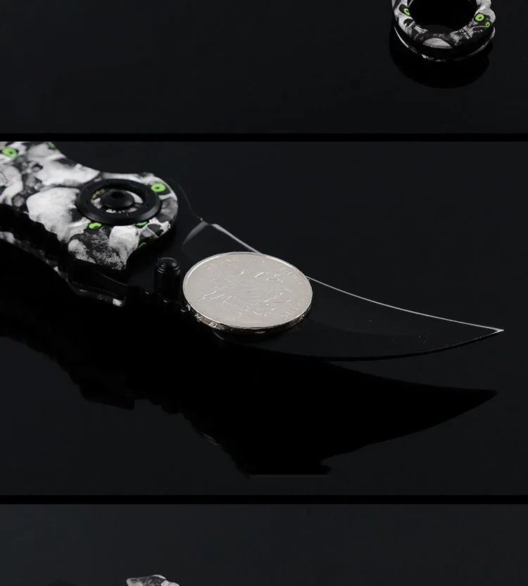 상품 내용 주요 특징: -아주 멋진! CS 이동 카운터 스트라이크 발톱 칼 -스테인레스 스틸 샤프 블레이드, 스테인레스 스틸 핸들 플라스틱 커버, 사용 내구성 -인체 공학적으로 핸들, 편안한 사용 -매달려 클립 핸들, 더 편리 캐리, 당신은 당신이 걸어 가방, 벨트, 등 -좋은 도구 캠핑, 사냥, 하이킹, 모험, 코스프레 홈 사용 참고: 멀리 유지, 그들은 자신을 다치게하지 전체 길이: 18.00 센치메터 블레이드 길이: 0.65 센치메터 핸들 길이: 13.00 센치메터 블레이드 폭: 3 센치메터 블레이드 두께: 3.0 미리메터 블레이드 재질: 440C 경도: 59HRC 핸들: 스테인레스 스틸 s 포장 상세