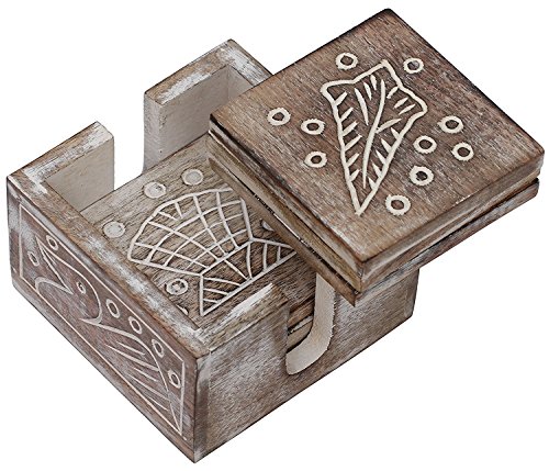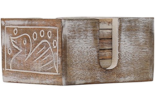 Protect your tabletops and counters beautifully using end-grains of mango wood to create distinctive patterns on each coaster. When not in use the set of six coasters nestle in an attractive caddy featuring a duck