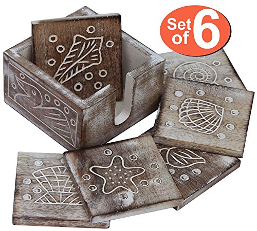Valentine Gifts Ideas 100% Mango Wood |Handmade|Coasters Set of 6 - Shabby Chick Drink Coaster for Tea Cups , Coffee Mugs , Wine Tumbler , Espresso Cups - Ideal for Everyday Use