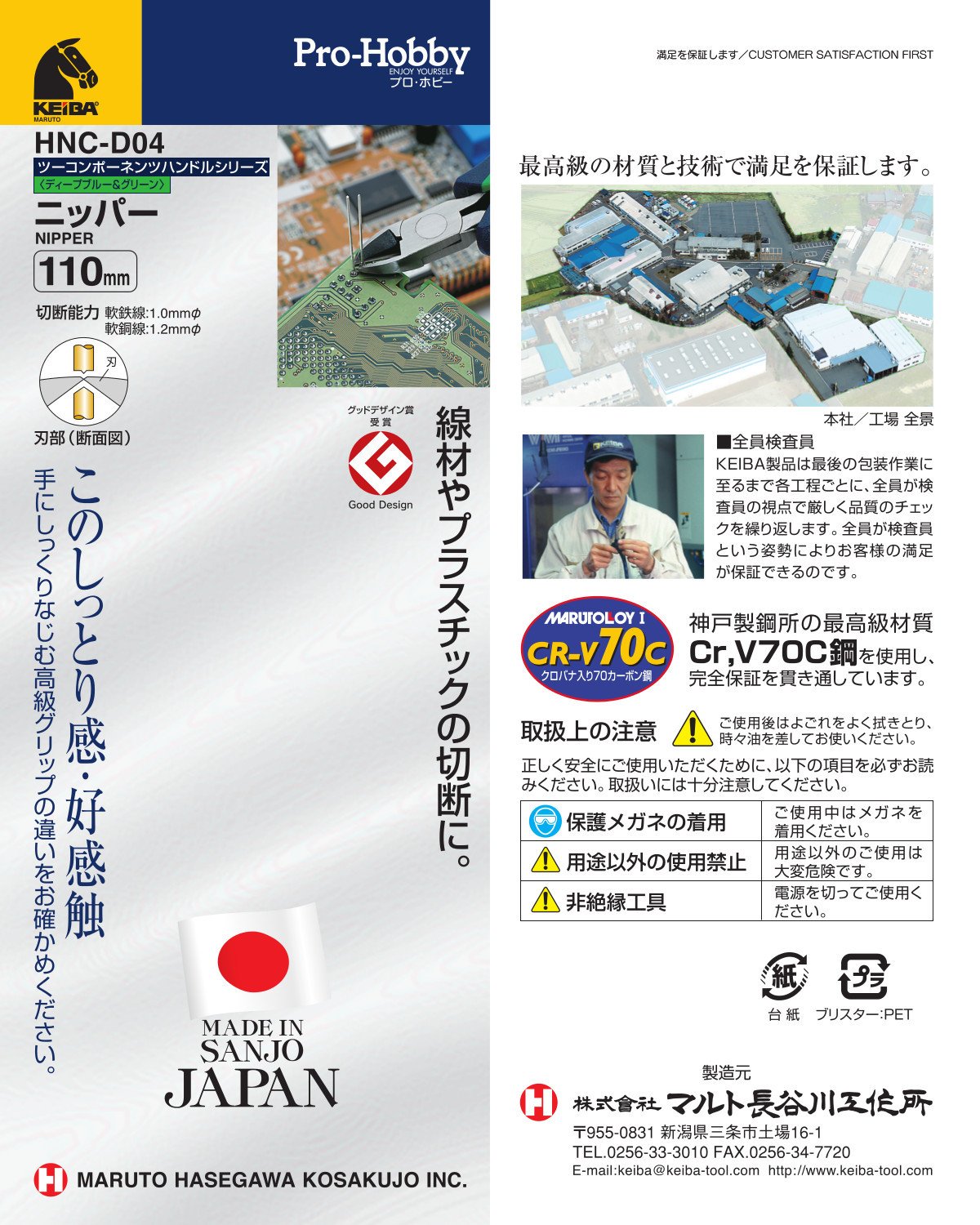 ● [Product Size] Width 50 × Height 110 × Length 15 mm Weight 70 g ● Item Code: 4962537302216 ● JAN Code: 4962537302216 ● Brand Name: Keiba ● Product Name: Prof Hobby Nipper ● Standard: HNC - D04