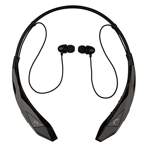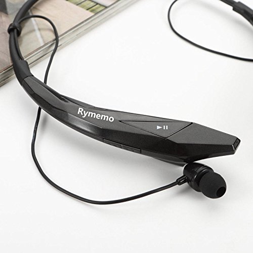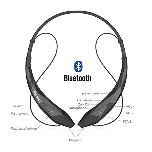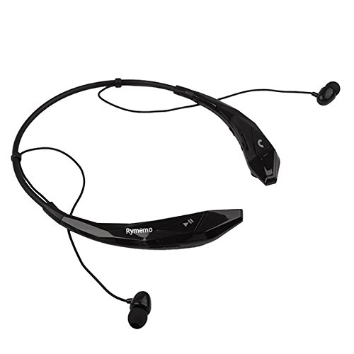 Rymemo 2015 Newest Diamond Universal Wireless Bluetooth 4.0 Stereo Music Headset Headphone Earpiece Sports Vibration Neckband Style Earphone for Cellphone (Black)