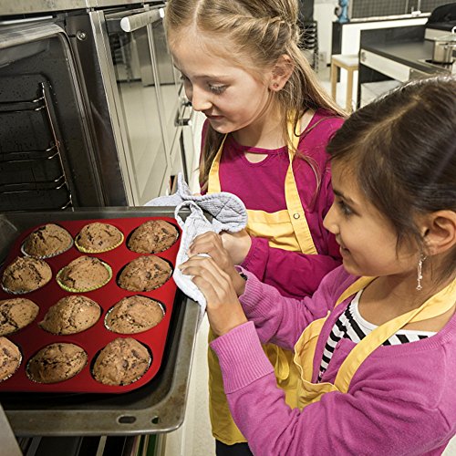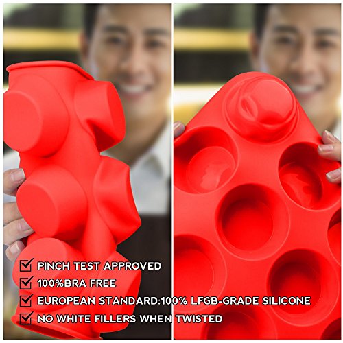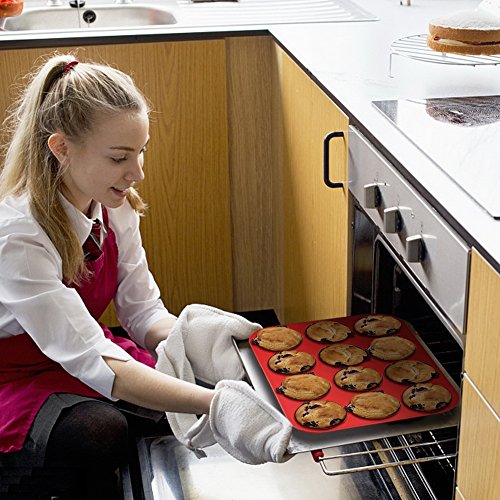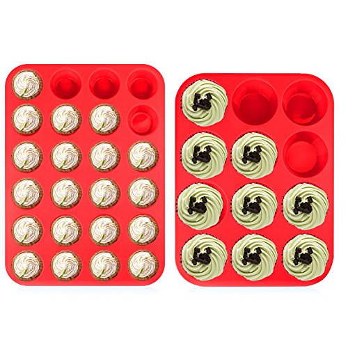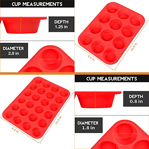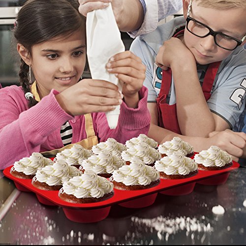 (12 & 24 Cup Sizes) -Non Stick, BPA Free Bakeware Silicone Muffin & Cupcake Baking Pan Set -Top Home Kitchen Trays & Molds - Dishwasher Safe(Red-2 pack)