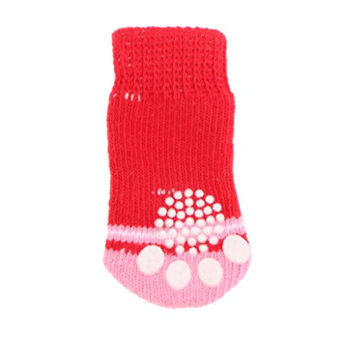 -. Binding : Misc. -. Brand : MonkeyJack -. Feature : Made from cottom, soft and comfortable to wear / S (LxW): Approx. 65x32mm/2.56x1.26 inches; L (LxW): Approx. 90x47mm/3.54x1.85 inches / Anti-slip Print on the soles to provide extra traction on slippery surfaces. / Indoor Socks will keep your pet paws clean and warm. Also help to protect your pets paw / Breathable knit socks can also prevent home floor, furniture or other home items being scratched by pets -. Label : MonkeyJack -. Manufacturer : MonkeyJack -. MPN : 077t85425572714263c71 -. PackageQuantity : 1 -. PartNumber : 077t85425572714263c71 -. ProductGroup : Pet Products -. ProductTypeName : PET_SUPPLIES -. Publisher : MonkeyJack -. Studio : MonkeyJack -. Title : MonkeyJack 4Pcs/Set Pet Small Dog Warm Soft Socks Bone Pattern Anti-slip Cotton Knit Socks Skid Bottom (Red Color)