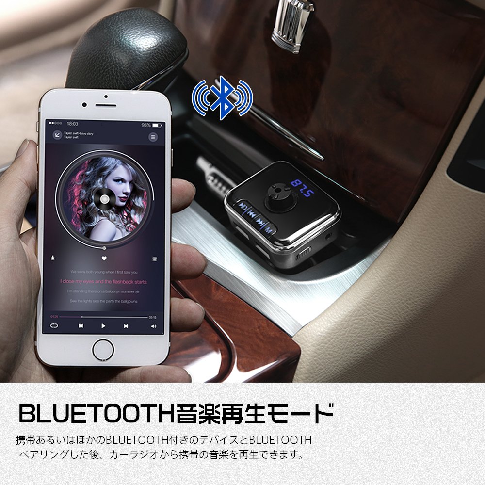 After paired with this product with smartphone with Bluetooth, music can be played from the car radio, matching with the frequency of this product and car radio.