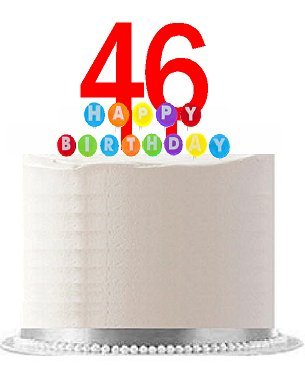 Item#046WCD - Happy 46th Birthday Party Red Cake Topper & Rainbow Candle Stand Elegant Cake Decoration Topper Kit