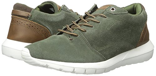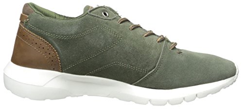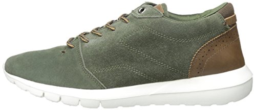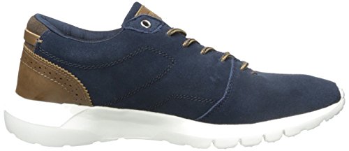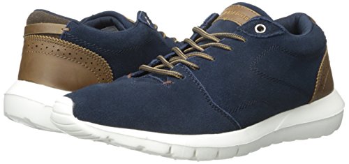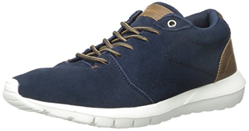 Low-top suede sneaker featuring pinked leather overlay at counter and embossed logo patch at tongue