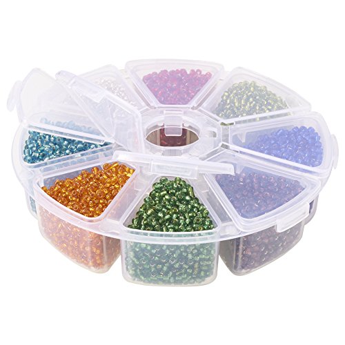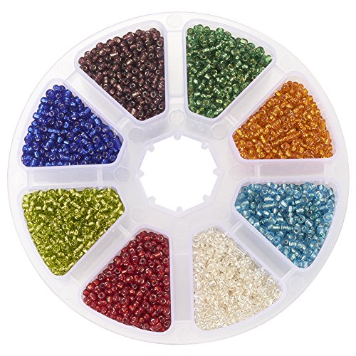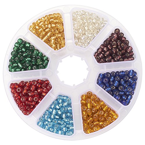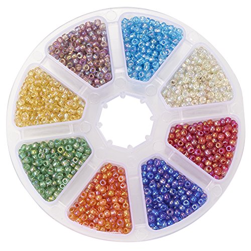 1 Box 12/0 Glass Seed Beads Transparent Silver Lined Loose Spacer Mini Glass Seed Beads, Mixed ColorSize: about 2mm in diameter, hole: 0.5mm.