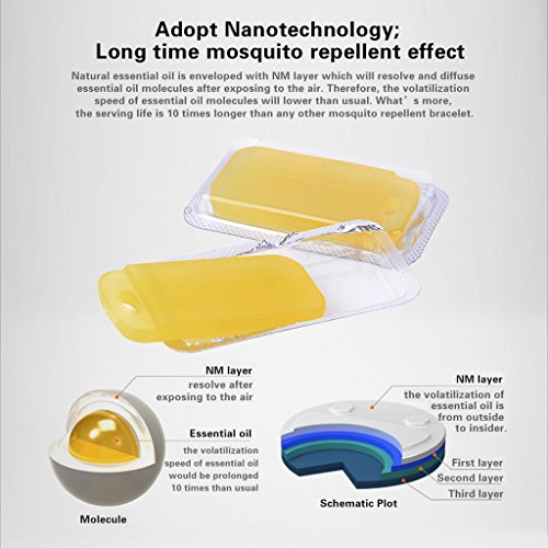 -. Feature : 100% Natural essential oils,No DEET,free of artificial chemicals,even suitable for babies / Long servicing life and portable,each mosquito repellent lump is about one week / Application Range: Indoor and outdoors sports; climbing; camping; swimming; fishing; hiking etc / Mosquito repellent radius: 1.5 m,wear it on your wrist, ankle or even the baby stroller to keep those pesky insects away / One Size Fits All : men, woman and children are availiable