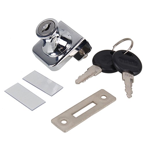-. Feature : Cabinet Showcase Glass Door Lock / Chrome plated steel showcase and pass-thru window lock / Fits up to 3mm-10mm/0.12"-0.39" thick glass / Adds style and security to stereo cabinets and showcases with glass doors