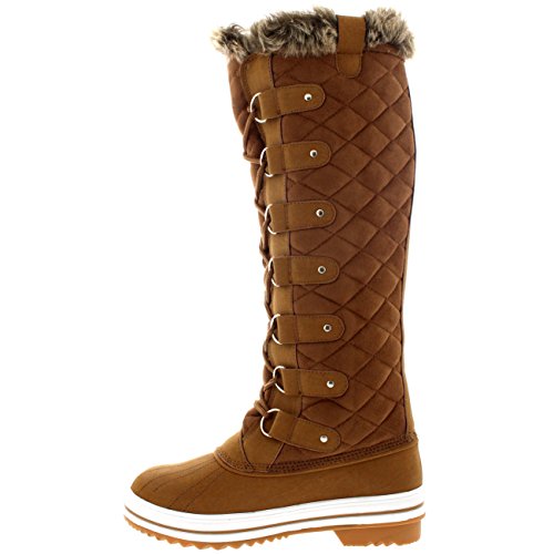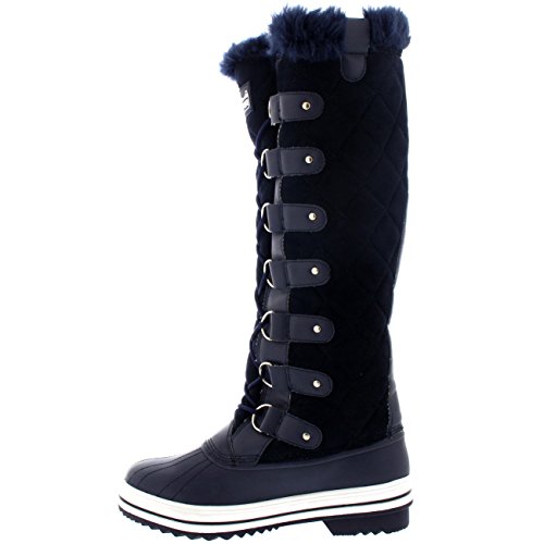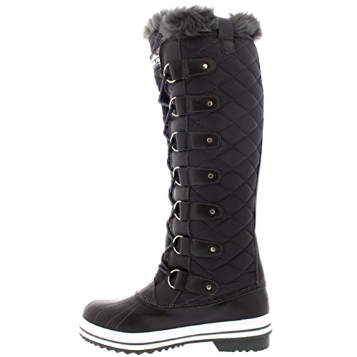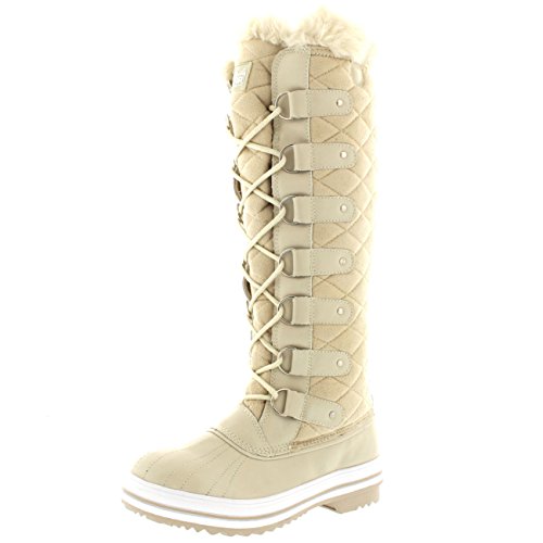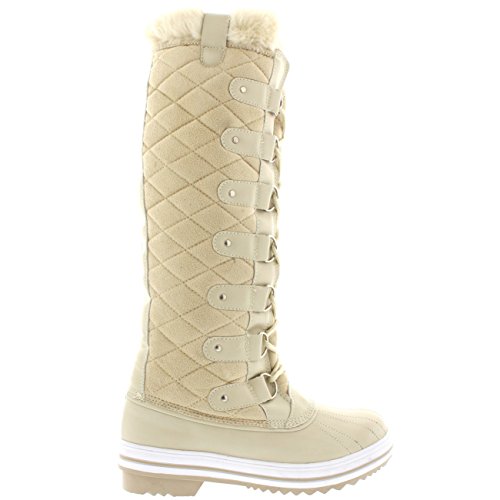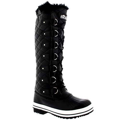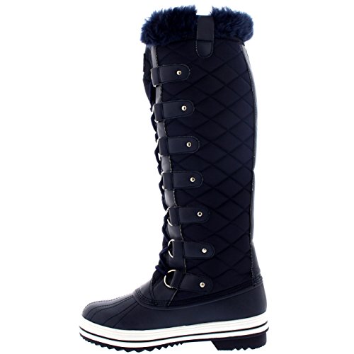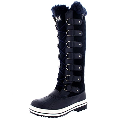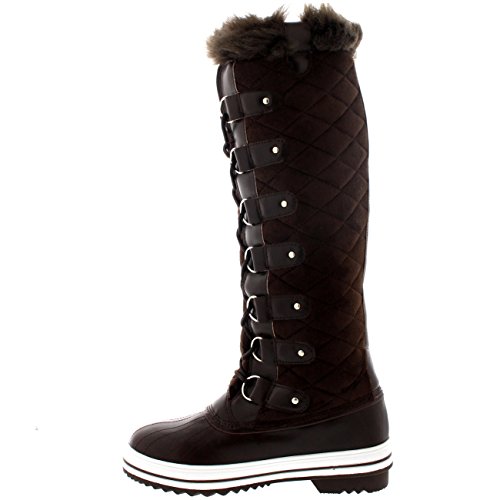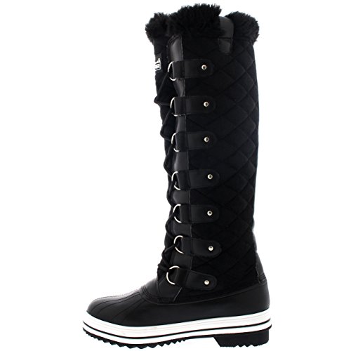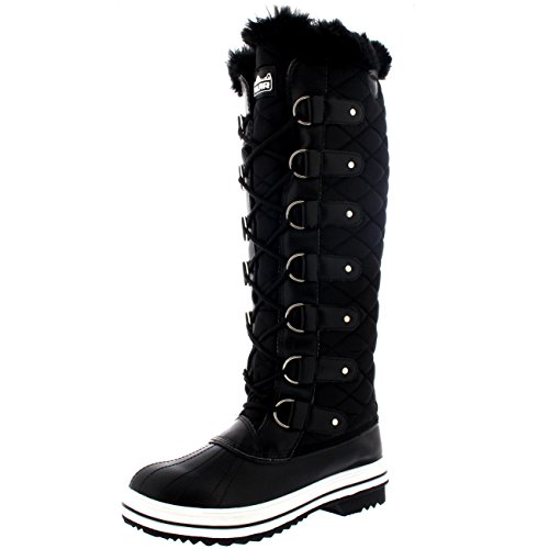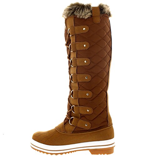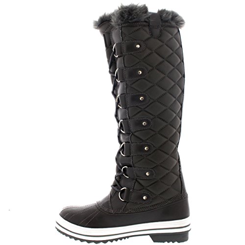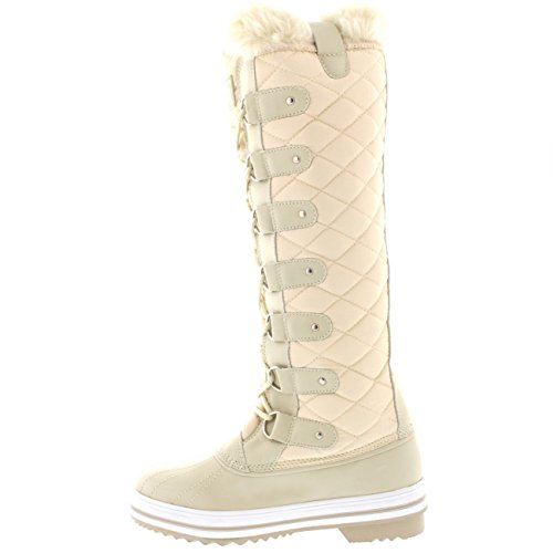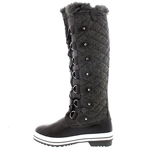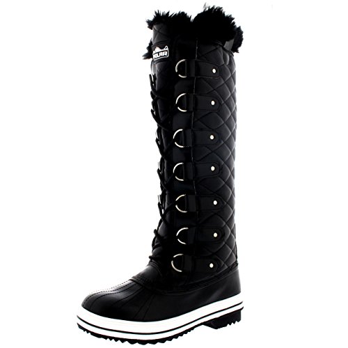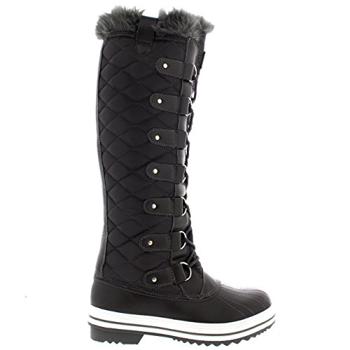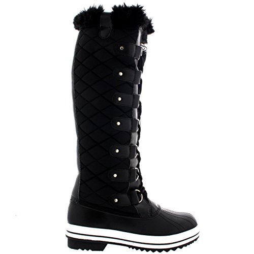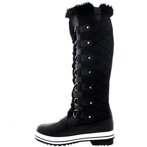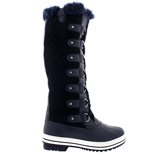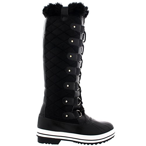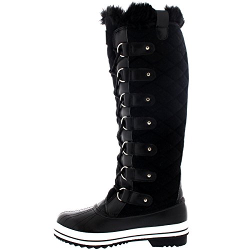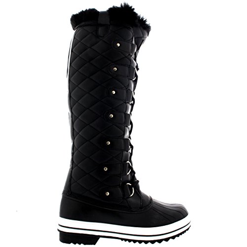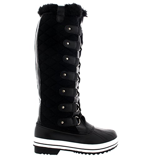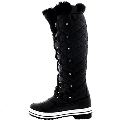 | Womens Quilted Knee High Duck Fur Lined Rain Lace Up Muck Snow Winter Boots |