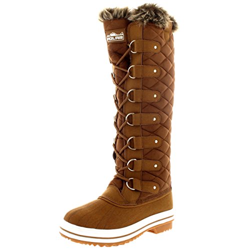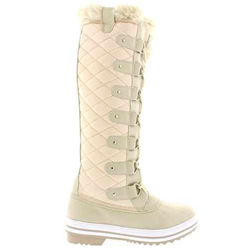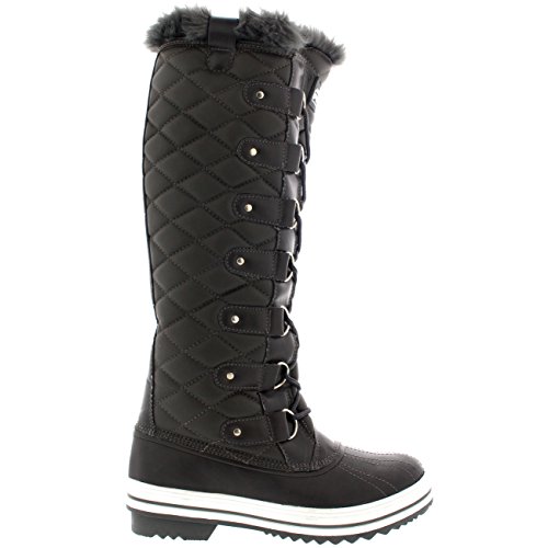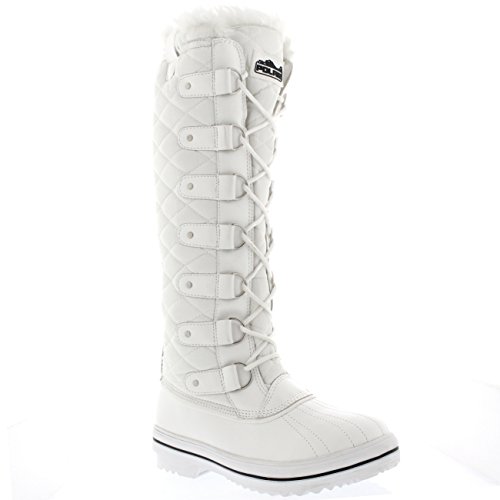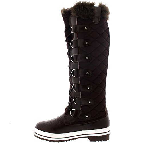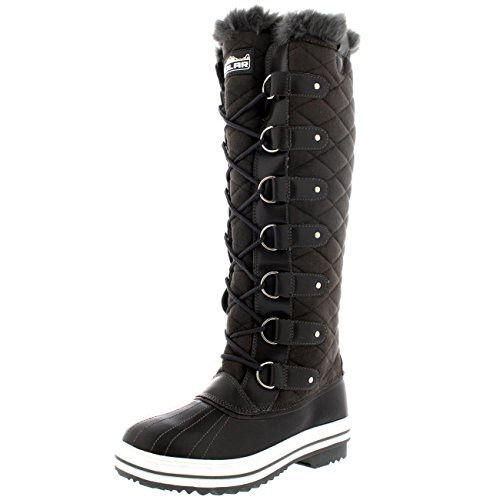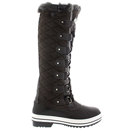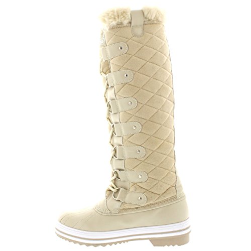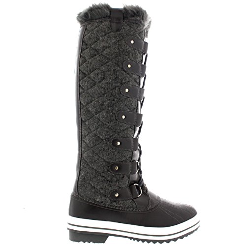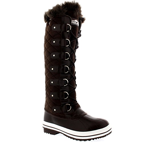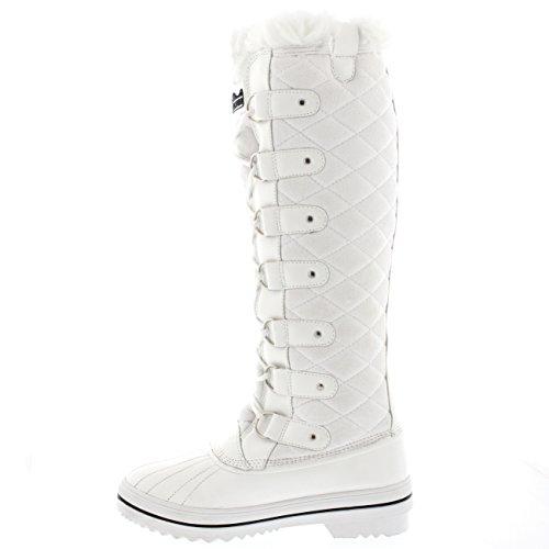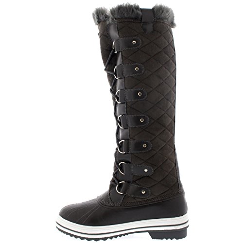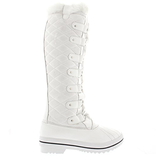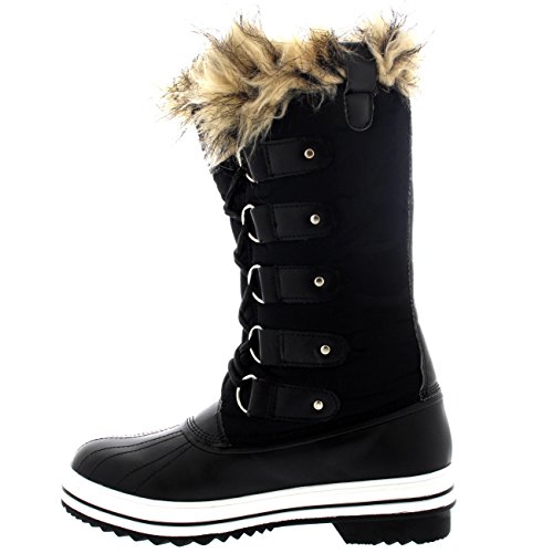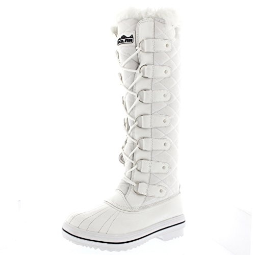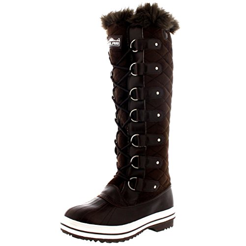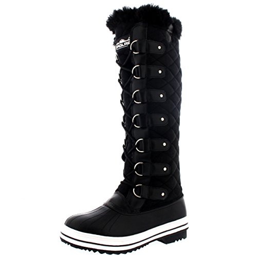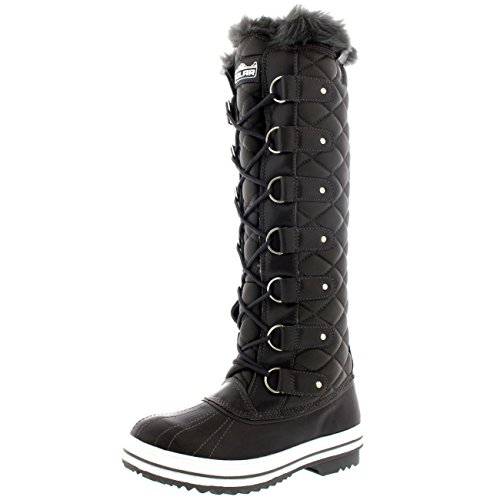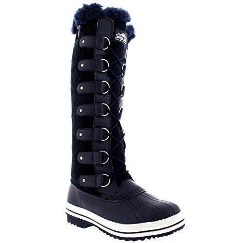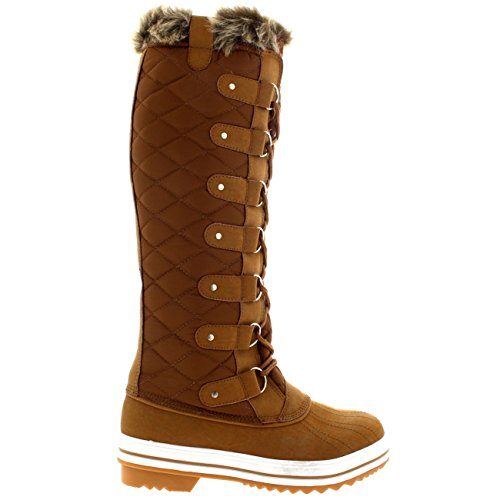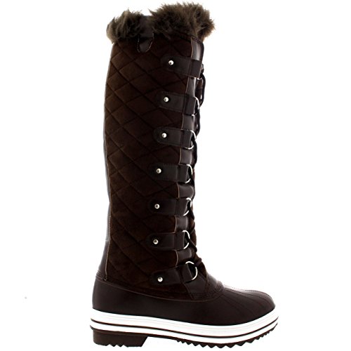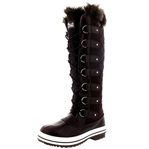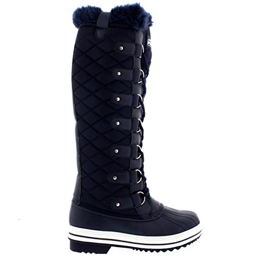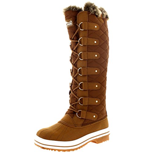 | Womens Quilted Knee High Duck Fur Lined Rain Lace Up Muck Snow Winter Boots |