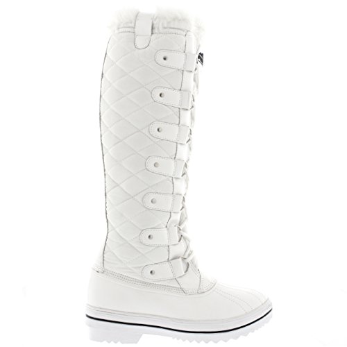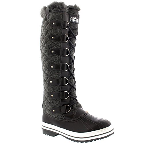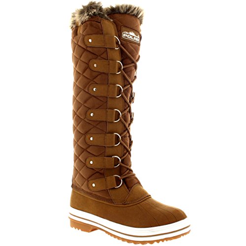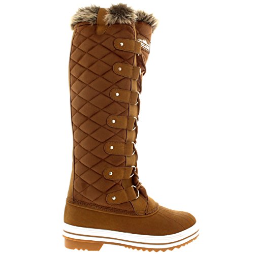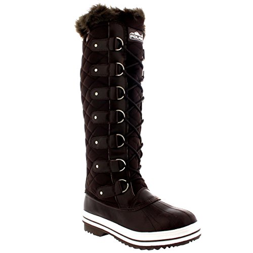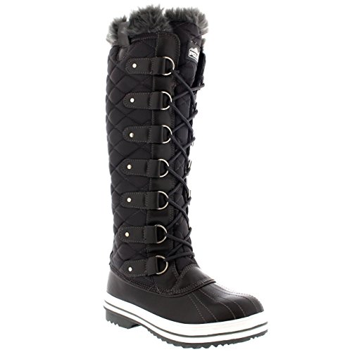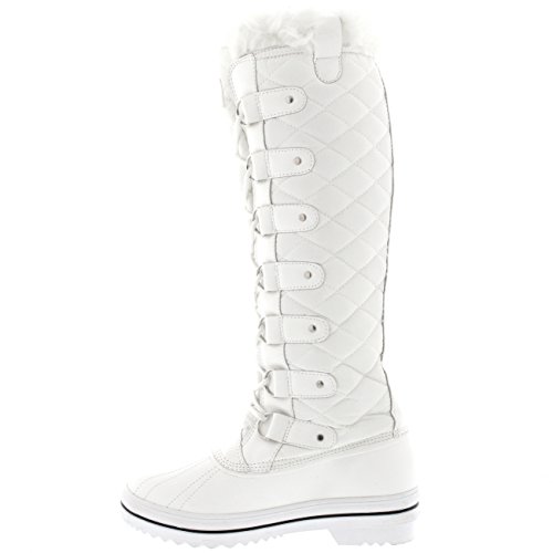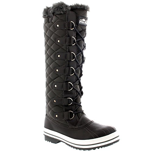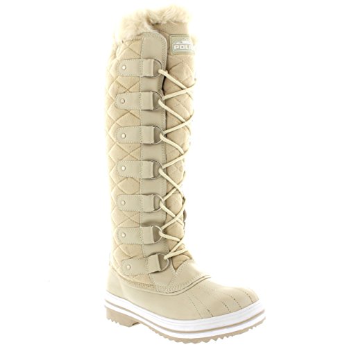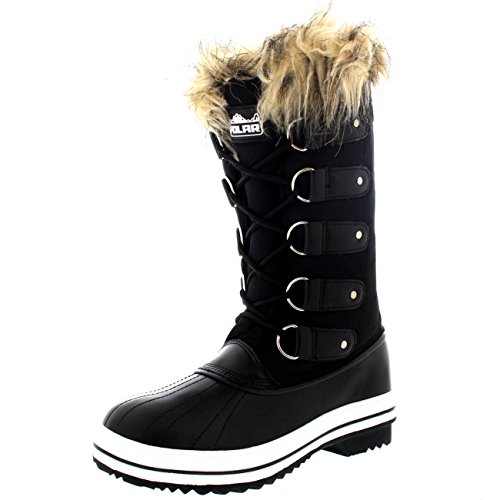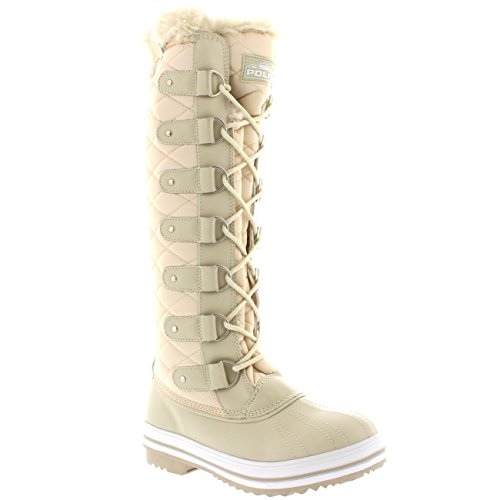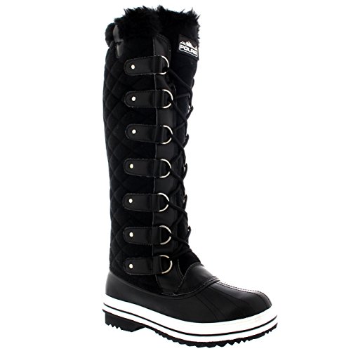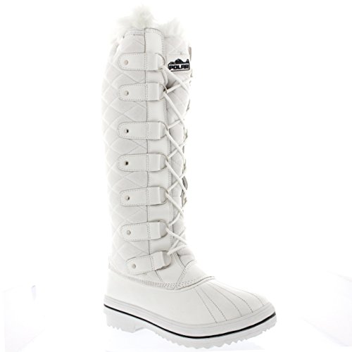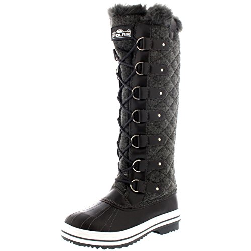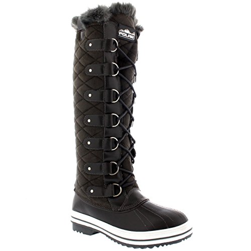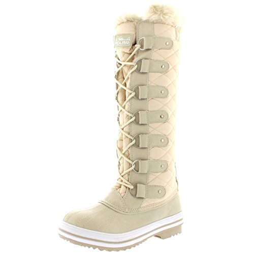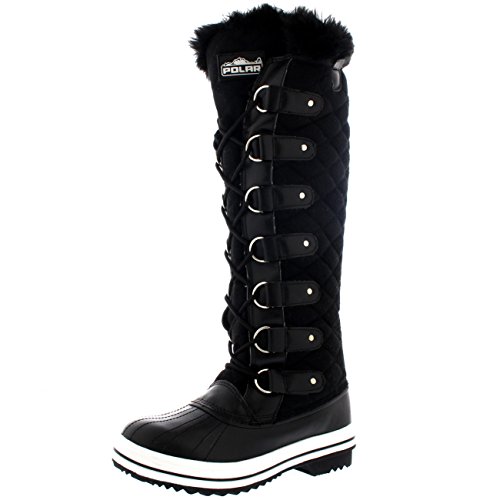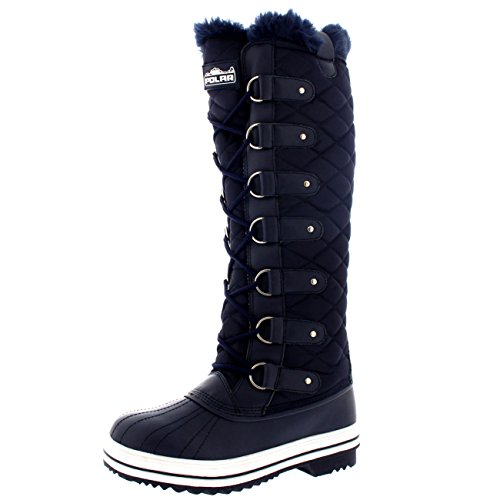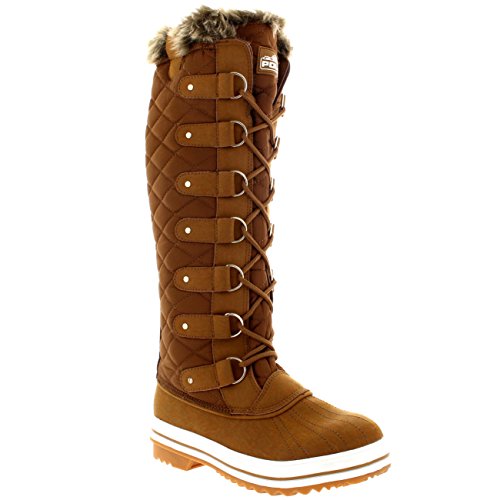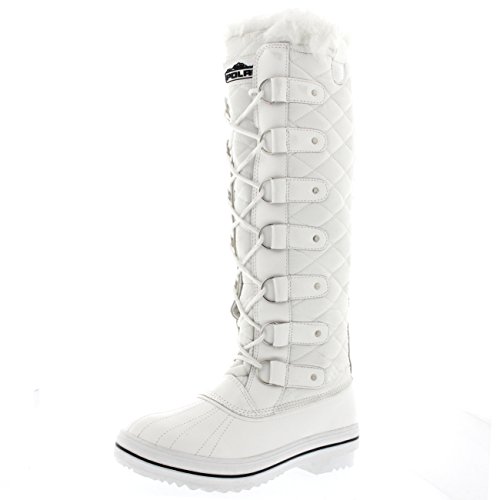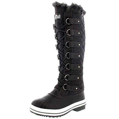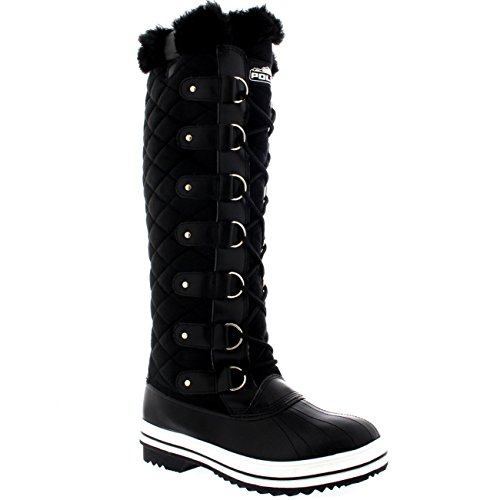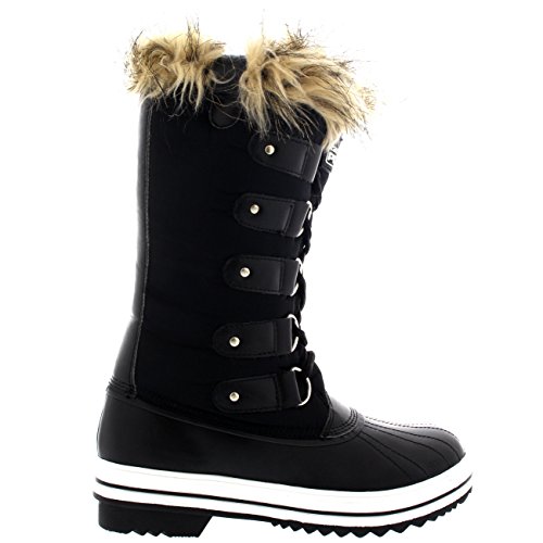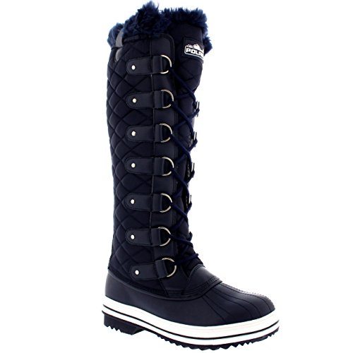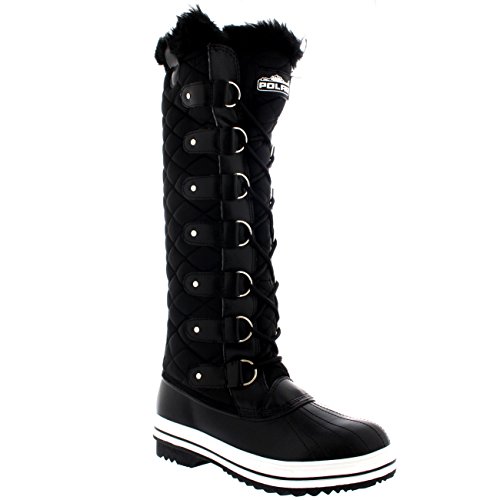 | Womens Quilted Knee High Duck Fur Lined Rain Lace Up Muck Snow Winter Boots |