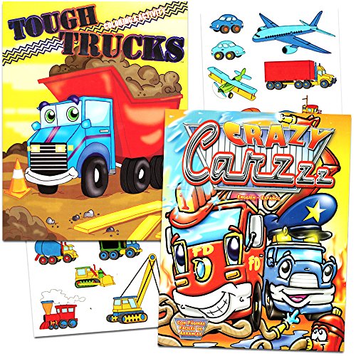 Studio : Cars and Trucks Party Supplies Publisher : Cars and Trucks Party Supplies Binding : Toy Product Description Cars and Trucks Coloring Book and Stickers Set - 2 Coloring Books and Over 50 Stickers Featuring Cars, Trucks, Trains, Planes, Boats, Construction Vehicles and More! Over 50 colorful Cars and Trucks stickers. These stickers are great for any cars or trucks birthday gift. Stickers are bright and fun -- perfect for toddlers and kids. Includes one cars coloring book and one trucks coloring book. Perfect for a birthday gift at any Cars and Trucks themed party. This toddler stickers set includes: cars, trucks, tractors, trains, bulldozers, dump trucks, concrete trucks, cranes, boats, planes, fire trucks, semi-trailer trucks, motorcycles and more! A great tool for teaching your little one about vehicles. Great fun for any Cars and Trucks fan! Perfect as Cars and Trucks party supplies, party favors, birthday gifts, reward stickers, motivational stickers, and more! 0