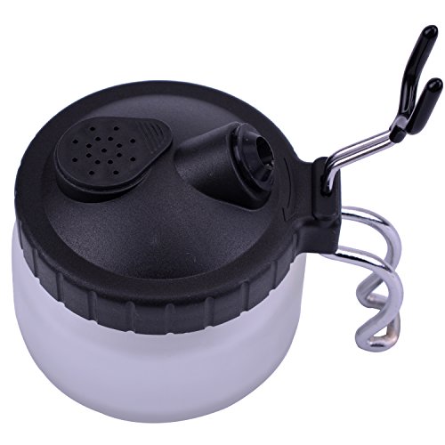 EASY TO USE- Open the cap that is on the cleaning pot, place the filter which is coming with the cleaning pot into the opening. Pour about 1.5cm height water into the cleaning pot, place the airbrush nozzle into the port securely, inject the cleaner into the airbrush, and the cleaner will blow through the airbrush into the jar without mess