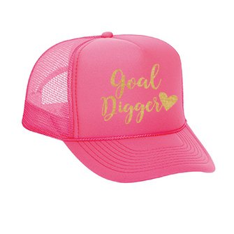 Binding : Apparel Product Description WE ARE IN LOVE WITH THIS ADORABLE HAT! BE A GOAL DIGGER IN THIS TOTES ADORBS HAT WITH GOLD METALLIC LETTERING...YOU ABSOLUTELY CAN'T GO WRONG. THIS IS ALMOST TOO CUTE TO SWEAT IN! WEAR IT TO THE GYM, BEACH OR OUT RUNNING ERRANDS, AND PROUDLY SHOW OFF YOUR INNER GOAL DIGGER. AVAILABLE IN 3 COLORS. This hat has a foam front and mesh back with an adjustable back closure and a matching color sweatband. GOAL DIGGER HAT BY MOXIE 0