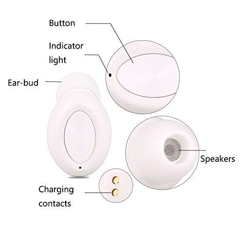 -. Feature : Bluetooth 4.1 Version: Easy and fast pairing with your Bluetooth-enabled devices in 32 feet, Built-in mic for hands-free calls. Bluetooth 4.1 Version provides steady Bluetooth signal and provides steady Bluetooth signal and support stereo loss less music. The Headphones are compatible with most cell phones, iPhone and Android. / Lightweight but Powerful: Up to 6 hours talk time / music time (Playtime varies according to volume level and audio content); 145 hours standby time and 1-2 hours charging time; Super Light Weight Design, the net weight is only 0.15oz; you will feel nothing for gym and workout. / Two Magnetic Chargers: Magnetic USB charging is much more convenient and creative than ever - No cable or plug needed, just simple put your mini earbud into the right port which contains hidden magnet, then it will attach to the charging thimble automatically. you can put one charger at home or office,and leave the other on the car.Charing it anytime and anywhere. / True HD High Fidelity Sound: Built-in HD and Sensitivity microphone, the hands free headset is ideal for in car calling and friends chatting, or working use. This best headset owns better echo cancellation, noise suppression and stable signal. / Noise reduction: Built-in microphone Allows clear Phone communication; Enables use as a headset. Music and phone controls ensure ease of use. Music and phone controls ensure ease of use.