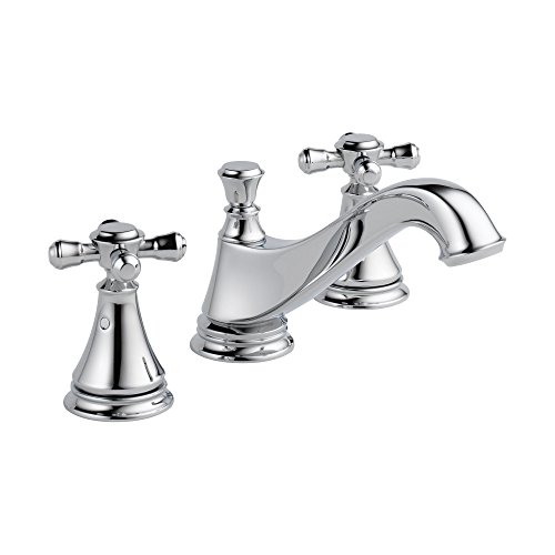 -. Title : Delta Cassidy Chrome Finish Widespread Lavatory Low Arc Spout Bathroom Sink Faucet INCLUDES Two Cross Handles and Matching Metal Pop-Up Drain D1316V