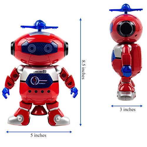 MUSIC AND FLASH LIGHTS: This fun electronic toy does not only dance, it plays music and has flashing lights too! The robot will dance to the beat and make a light show with the beautiful and colourful flashing lights that kids will love. The lights create a constant action to entertain kids and even pets can engage, colourful lights propeller.