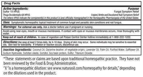 Studio : Nature's Innovation Publisher : Nature's Innovation Binding : Misc. Product Description Naturasil for Nail Fungus Liquid is lipophilic, which means they absorb into your skin and begin combating the fungus right away. Combining with Naturasil Nail Fungus Medicated Soap helps speed the healing process by keeping nails and the skin around them clean and fungus free. Both products work to combat nail fungus, however, combining them helps to reduce healing time. 1. Wash affected area thoroughly with Naturasil Nail Fungus Medicated soap. Dry area completely. 2 Apply Naturasil for Nail Fungus to affected area 3-4 times per day. For best results, apply directly to infected nail and into the infected nail bed. Note: It can take several weeks to a few month to eliminate nail fungus infections due to the slow growth time of the nail. The nail must grow completely out, being free of nail fungus before it is completely healthy. If you do not continue treatment until the nail has fully grown out, the nail fungus may return. Also, some individuals may be sensitive to essential oils. Please skin test for tolerability. If irritation or reaction occurs, discontinue use. All Naturasil products are created with natural essential oils in our FDA registered facility. When using Naturasil Nail Fungus treatments, you do not have to worry about unwanted side effects that other nail fungus treatments could potentially cause. 0