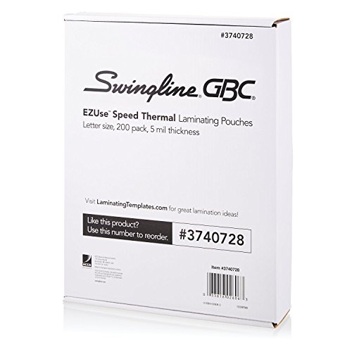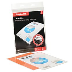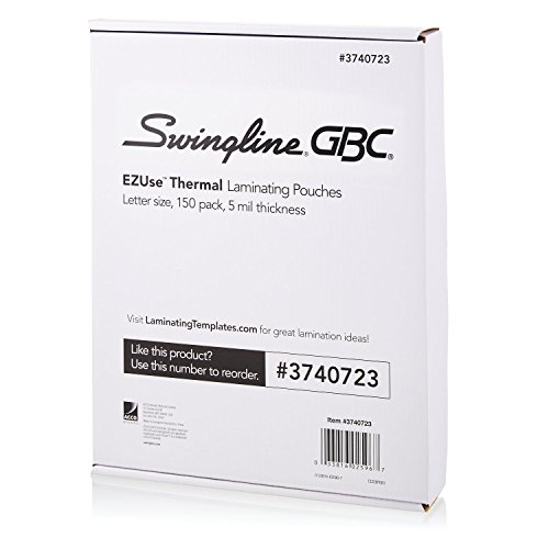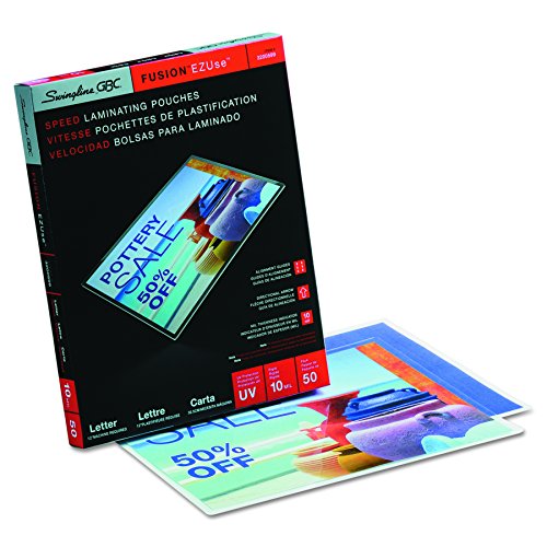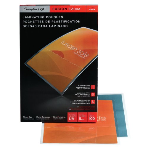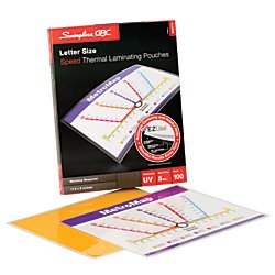For quality lamination, rely on EZUse Laminating Pouches. This 5 mil letter size speed pouch is one of the easiest to use pouches in the marketplace. Each pouch has 3 special features that make it easier to use, and it includes UV protection to protect documents against yellowing and fading. Alignment guides simplify document centering to provide perfect borders, while mil thickness icons help you determine the best laminator settings. Directional arrows on the pouch indicate which way to load the pouch to prevent jamming. Each of these helpful features disappears after laminating to deliver a crystal clear finish. The glossy, smooth laminated document is both durable and worthy of display. 100 pouches per box.Feature