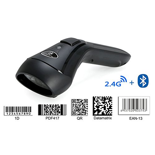 Koolertron Upgraded Dual 2.4G Wireless + Bluetooth Wireless 1D 2D Barcode Scanner QR PDF417 Data Matrix UPC Rechargeable Bar Code Scanner for Laptops/PC/Android/Apple IOS (1D&2D)