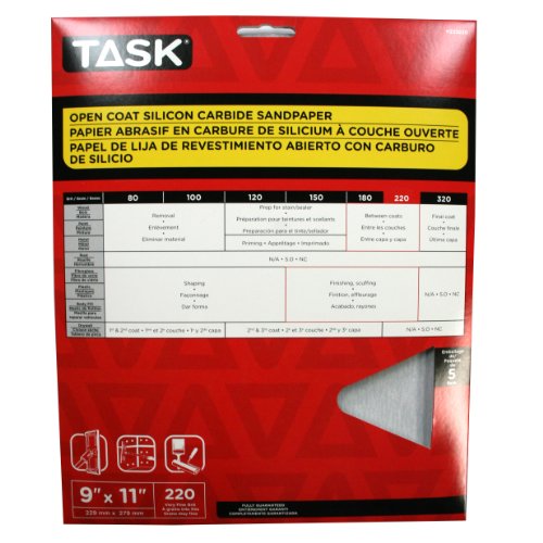 Task Tools PZ53220 9-Inch by 11-Inch Open Coat Drywall Sandpaper, 220 Grit, 5-Pack