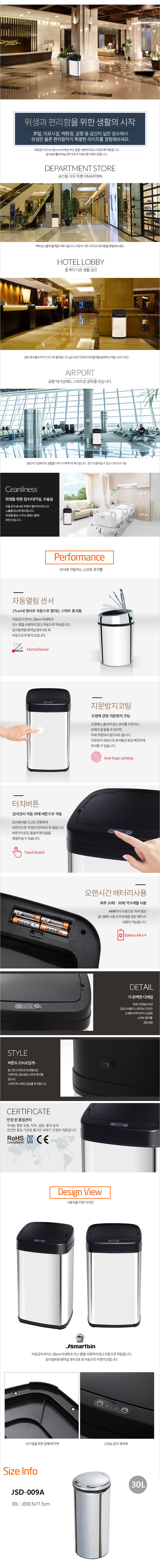 Noiseless Smart Trash Can JSD-009A 30L Silver Inner tube Yes Open automatic sensor