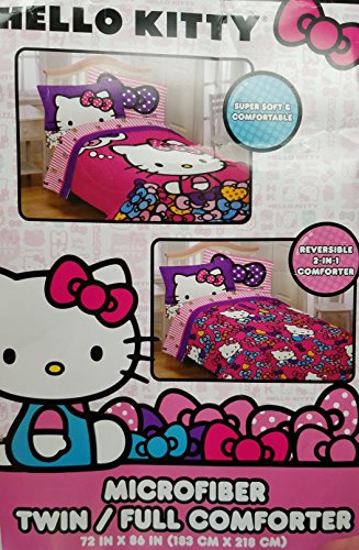 FULL Size Hello Kitty Reversible Comforter Set includes One TWIN/FULL Size Comforter (72"x86") and 4pc FULL SIZE Sheet Set (Two Pillowcases, Flat Sheet & Fitted Sheet)