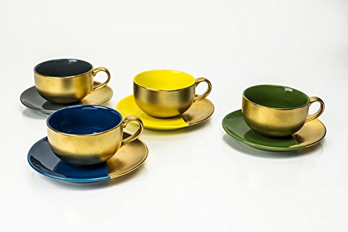 -. Brand : Yedi Houseware -. EAN : 0706580006714 -. Feature : Elegant yet contemporary set of 4 Desert Gold Tea Sets / Beautiful products for serving and enjoying hot beverages in style. Assorted Colors (Blue, Grey, Yellow and Green) with coordinating saucers. / 9oz Capacity crafted from the finest quality porcelain / Comes in a beautiful gift box / Hand Wash Only; not microwave safe, as the gold is electroplated. -. Label : Yedi Houseware -. Manufacturer : Yedi Houseware -. ProductGroup : Kitchen -. ProductTypeName : KITCHEN -. Publisher : Yedi Houseware -. Studio : Yedi Houseware -. Title : Yedi Set of 4 Desert Gold Tea Sets -. UPC : 706580006714