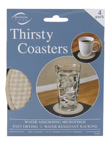 Envision Home 423400 Thirsty Coasters, 4.5-Inch Diameter, Taupe, Set of 4